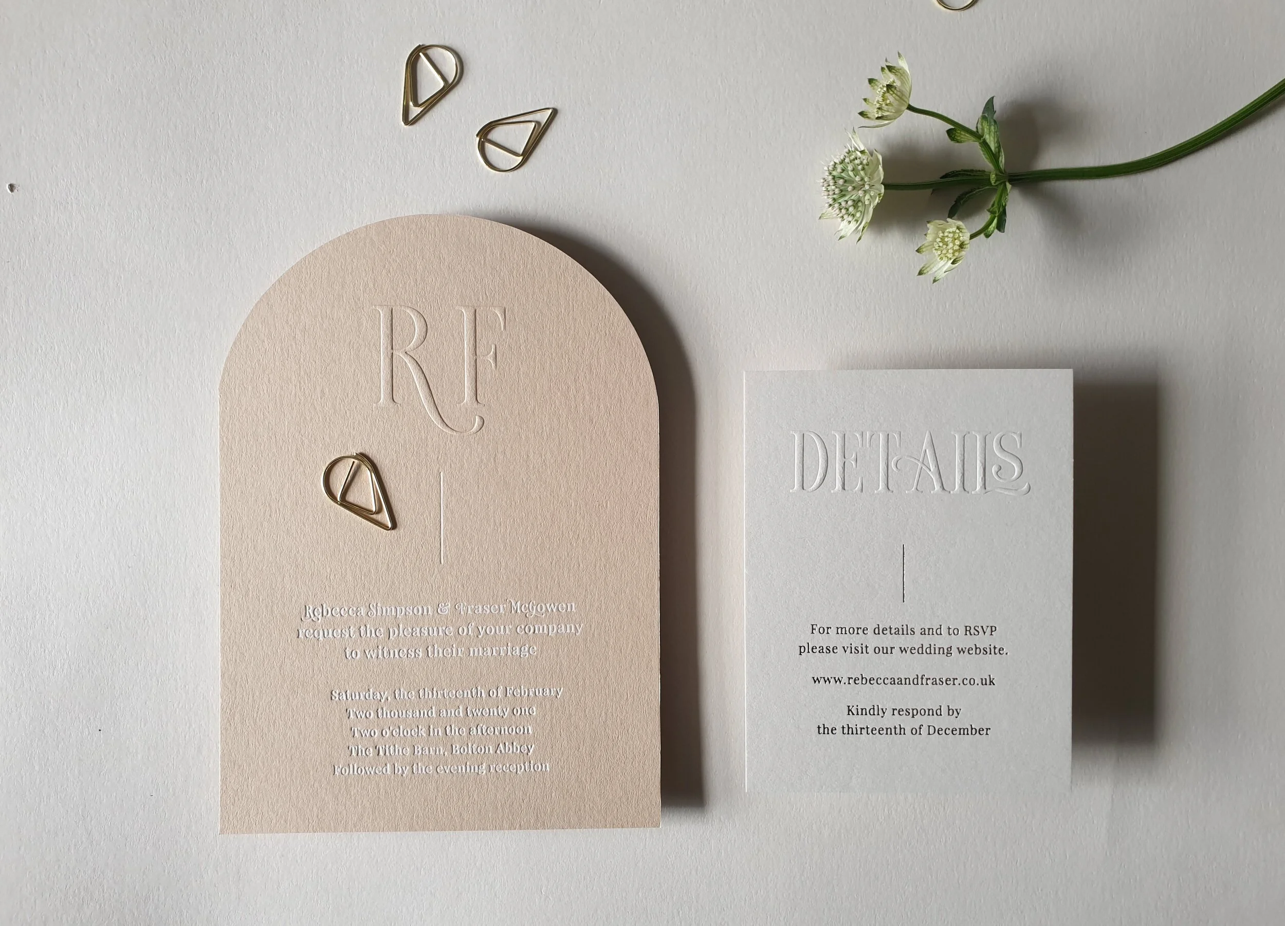 As with all of our invitation designs we can print in your choice of card colour and in letterpress or foil. coordinating ‘on the day’ stationery can also be provided.